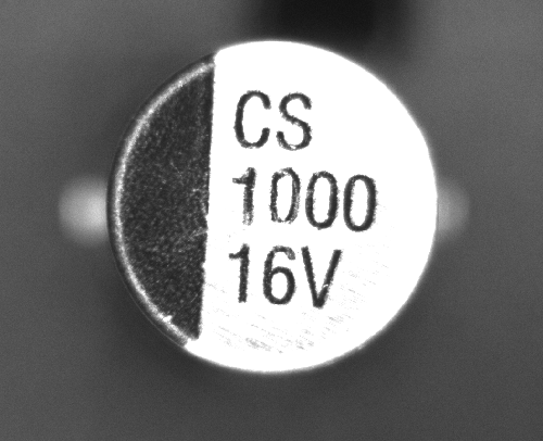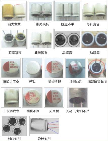 直插式電容頂部字符缺陷、頂部正負極方向缺陷及正負極印刷質量檢測。