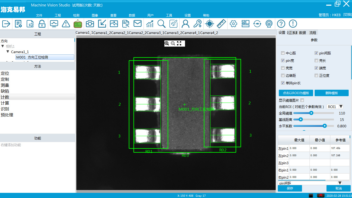 本系統(tǒng)采用四個相機,分為四個工位對半導(dǎo)體芯片進行檢測,分別是: