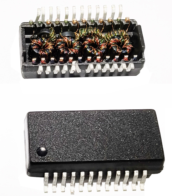 繞線質量AI檢測系統針對網絡變壓器Pin腳繞線的情況進行檢測,主要包含余線長,顏色錯誤,斷線,掉線,漏線等不良情況,下圖為產品正反兩面圖片。