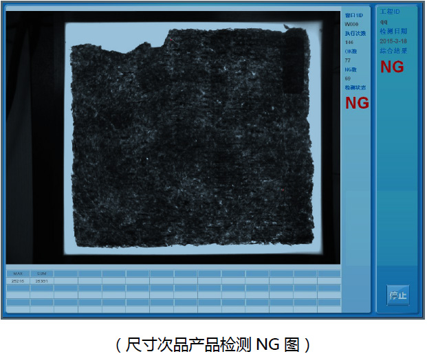 本系統用于海苔產品生產過程中各種缺陷的檢測,系統采用進口工業相機,可以快速獲取產品圖像,通過圖像識別、分析和計算,給出合格\不合格品的判斷,并輸出相應OK/NG 信號提示,以便于設備剔除對應的次品。