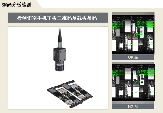 主要功能:檢測識別手機主板上的二維碼信息及載板上的條碼,檢測結(jié)果以字符串形式發(fā)送給服務器,上位機進行分板處理。